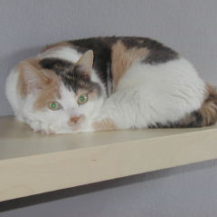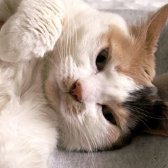 is Japanese for "cat" and she's Gato's little sister. She was the runt of the litter - the vet wasn't sure if she was gonna make it - but what a fighter she turned out to be! If Gato is king, then she is Empress - and rules with a clawed paw if necessary.